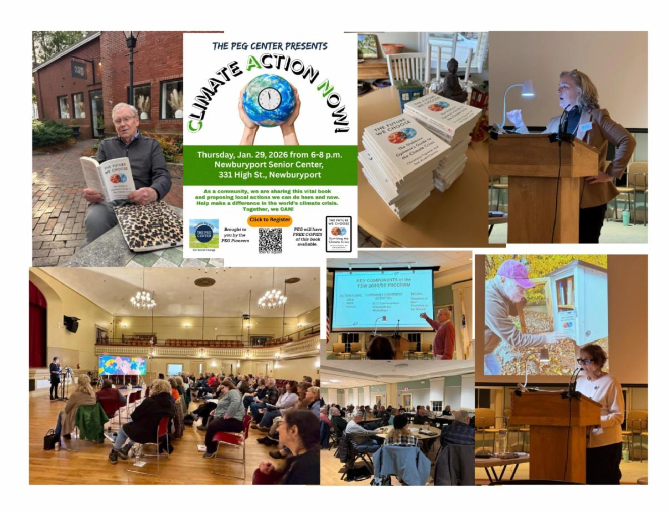 We are grateful for your interest and attendance at The Future We Choose climate events that The PEG Center has been organizing starting with a community-wide read of the book, followed by two book discussion meetings. We launched our climate action teams on 1/29. Many of you have been at one or more of these meetings! In a few short months, we have engaged with more than 250 people in our greater community who have received a free copy of the book “The Future We Choose” and we plan to distribute hundreds more books to keep interest and actions growing!